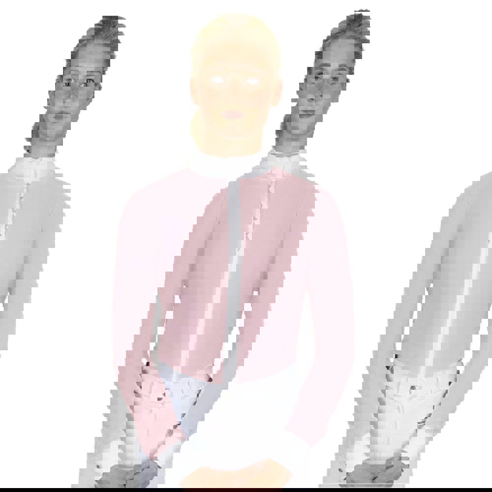 The Coldstream Womens Larkhall Diamante Show Shirt is a long-sleeved show shirt in blush pink, finished with contrast detailing for a clean, modern look. Designed with a high-neck and buttoned cuffs, it offers a neat, structured silhouette suited to competition and show-day wear.