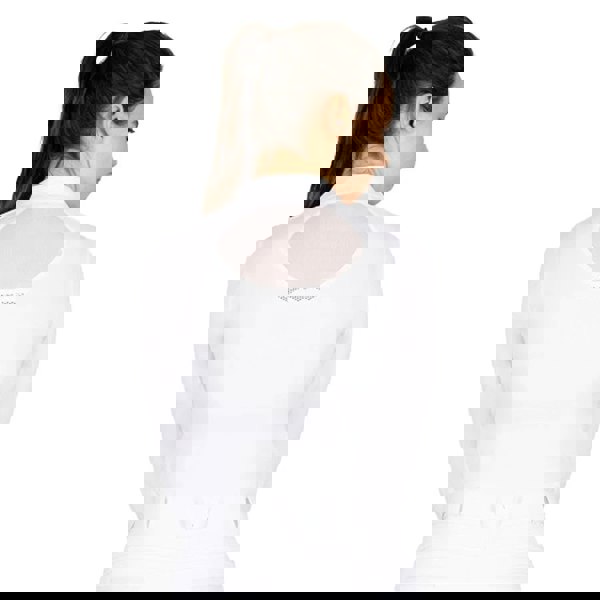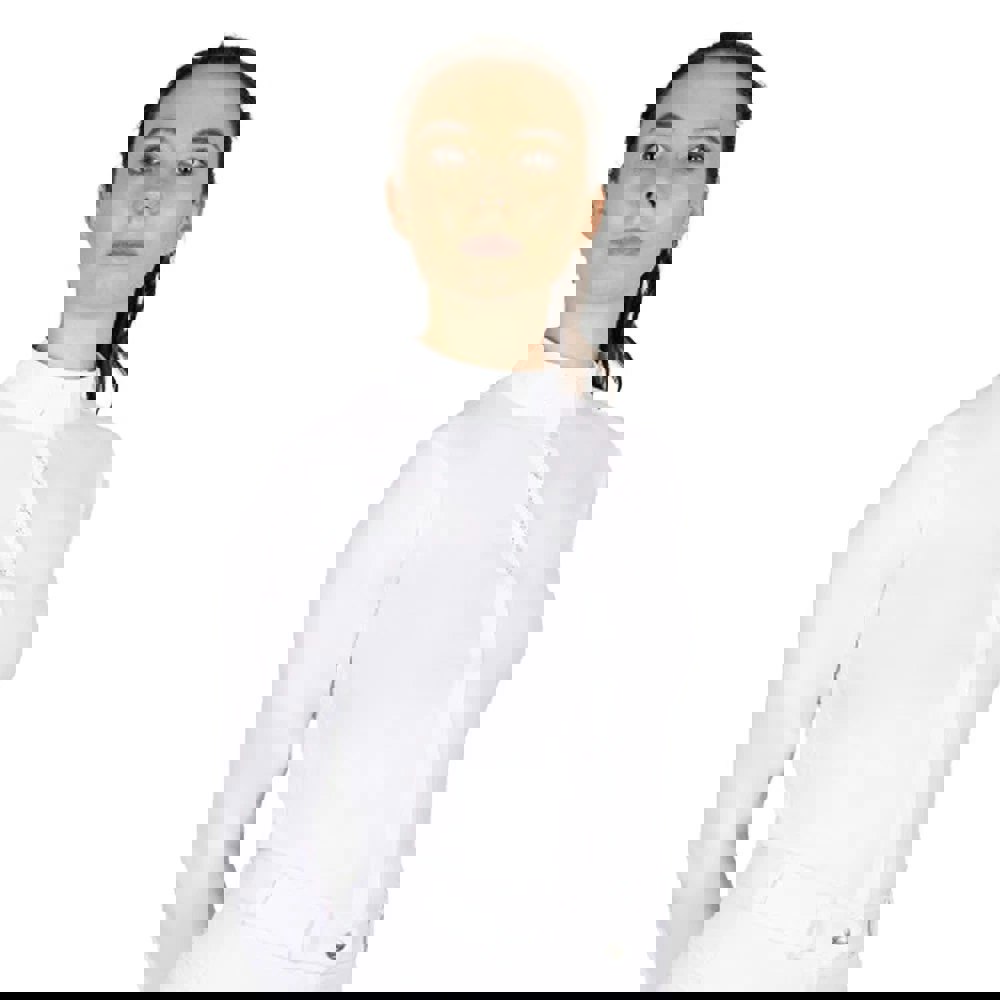 The Coldstream Womens Larkhall Diamante Show Shirt in white is a long-sleeved show shirt designed with a plain finish and contrast detailing for a clean, defined look. A high-neck silhouette with contrast at the neckline is paired with buttoned cuffs featuring contrast accents, creating a polished style suitable for show wear.