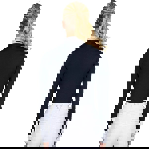 The Coldstream Womens Roslin Crystal Ruffles Show Shirt in navy is designed for a polished look, combining a colour block design with crystal and diamante detailing. Ruffled accents add a refined finish, while logo detailing completes the overall style.