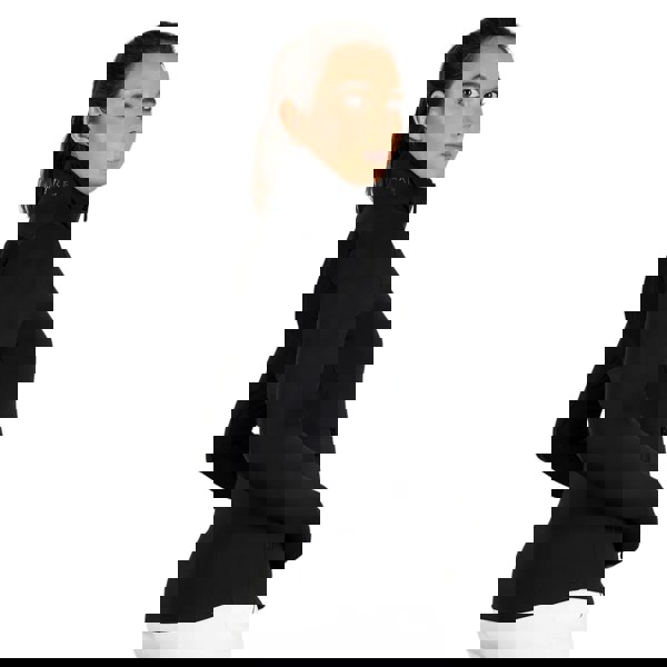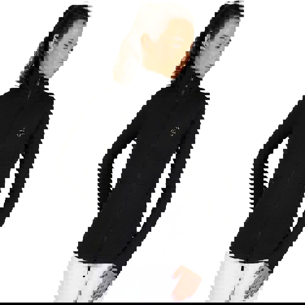 This long-sleeved sport jacket comes in a plain black finish with a diamante logo detail. It has a standing collar and a full-length two way zip fastening for a clean, streamlined look.