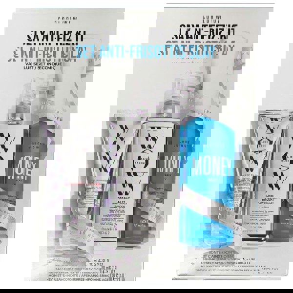 Color WOW Slay Anti-Frizz Kit containing a Color Wow Color Security Shampoo 75ml, a Color Wow Dream Coat 200ml Spray and a Color Wow Money Mist Leave in Conditioner 150ml.