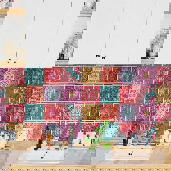 Add vibrant, stunning designs to your home with the Colourful Mandala Spanish Glossy 3D Sticker Tiles—the perfect way to make any room feel lively, fresh, and unique!