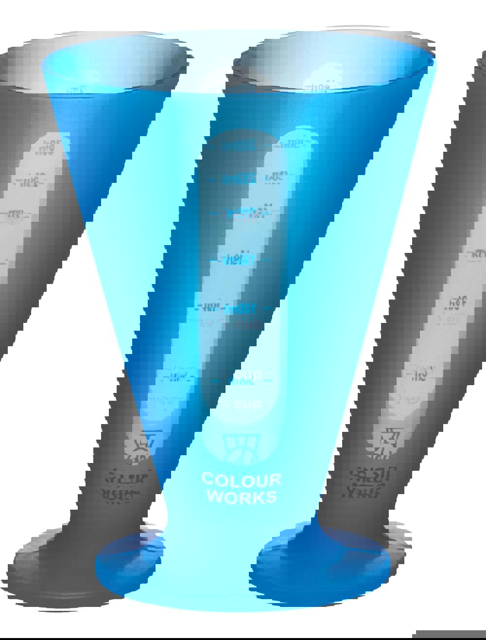 Guesstimates? Not a chance! This fresh piece of kit allows you to cook and bake the smart way. This silicone measuring cup for liquid and dry ingredients limits the chances of culinary disasters by measuring out your solid and liquid ingredients - ready to go in your favourite recipes. It features a pair of translucent windows, one marked with millilitres (up to 400 ml), one marked with cups (up to 1 cup). So, you can pour in your flour or sugar to measure for a moist sponge cake. Or liquids, like yoghurt and coconut milk, to make the base for a comforting chicken curry. It's a handy tool to have to hand. Finished in Colourworks' beautiful blueberry colour, it's no boring baking accessory. Instead it transforms cooking and baking sessions into a celebration of vibrant colour.