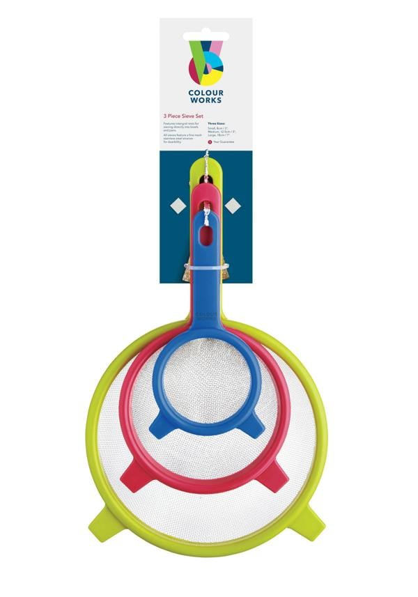 The perfect way to liven up your kitchen utensils, combine this sieve set with hundreds of kitchen tools and accessories in 11 gorgeous shades from the Kitchen Craft Colourworks collection.