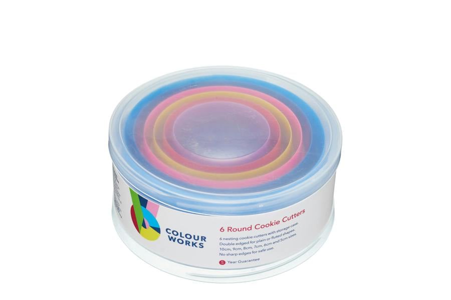 The cutters are sure to brighten any day of baking as they are coming in the refreshing colours of Colourworks. Featuring no sharp edges, ensuring they are safe for use by children, the cookie cutters nest inside each other and can be easily stored away in the clear plastic storage case.