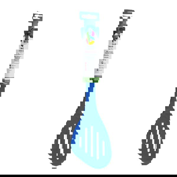 It's time to take a stand against broken yolks, half-flipped pancakes and crumbled cookies. Grab this colourful silicone turner and you'll be able to handle those delicate foods with the firm-but-fair attitude they need. It's all down to the clever construction - a tough metal core coated with soft, LFGB-grade silicone. It's flexible, so it will glide gently under fragile fried eggs, and it's sturdy, so it's great for lifting heavy burgers or scraping stubborn steaks from the pan. Colourworks has even added a clever new feature - a raised lip on one edge, which helps to keep ingredients in place as you serve up. Proud owner of some cutting-edge non-stick cookware? This heat-resistant turner can handle temperatures up to 260°C (500°F) and is gentle on non-stick coatings, so it's perfect for lifting straight from the pan. Time to clean up? This silicone spatula turner is stain and odour resistant, and easy to clean in the dishwasher or by hand. Of course, because it's Colourworks, your kitchen will feel a little brighter too. It's part of Colourworks' range of reinvented one-piece silicone utensils, available in four coordinate-able, mix-and-matchable shades: Cherry Red, Apple Green, Blueberry Blue and Plum Purple. Complete with a comfortable, textured handle, this flexible turner is 100% BPA free.