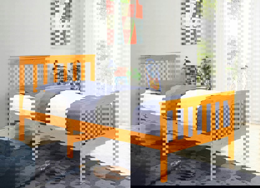Transform your bedroom with our 3ft Wooden bed frame in your choice of Caramel, White or White with a Caramel bar