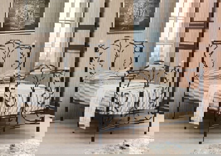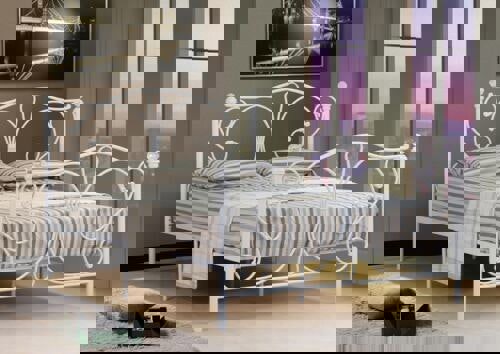 Featuring a solid metal frame and wooden sprung slatted base, this bed offers both style and sturdy support