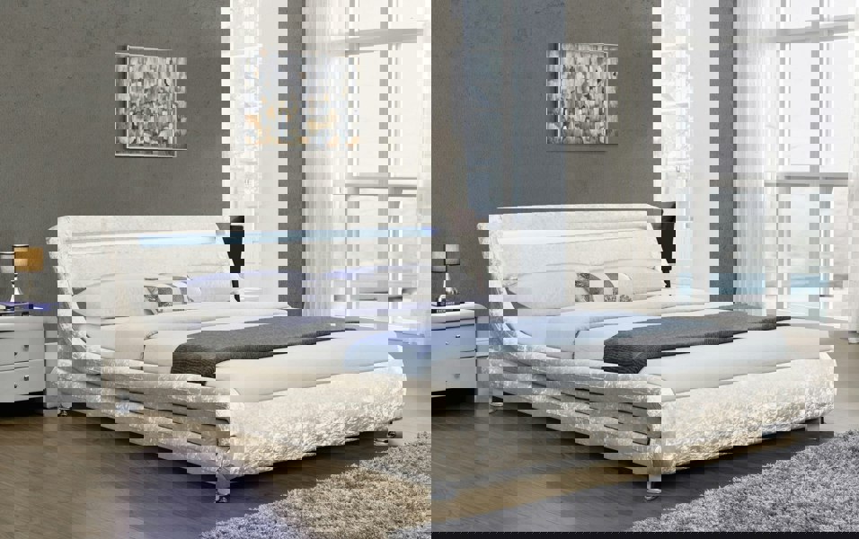 The Mallorca LED Crushed Velvet Bed Frame comes in 4 luxurious colours and 2 sizes