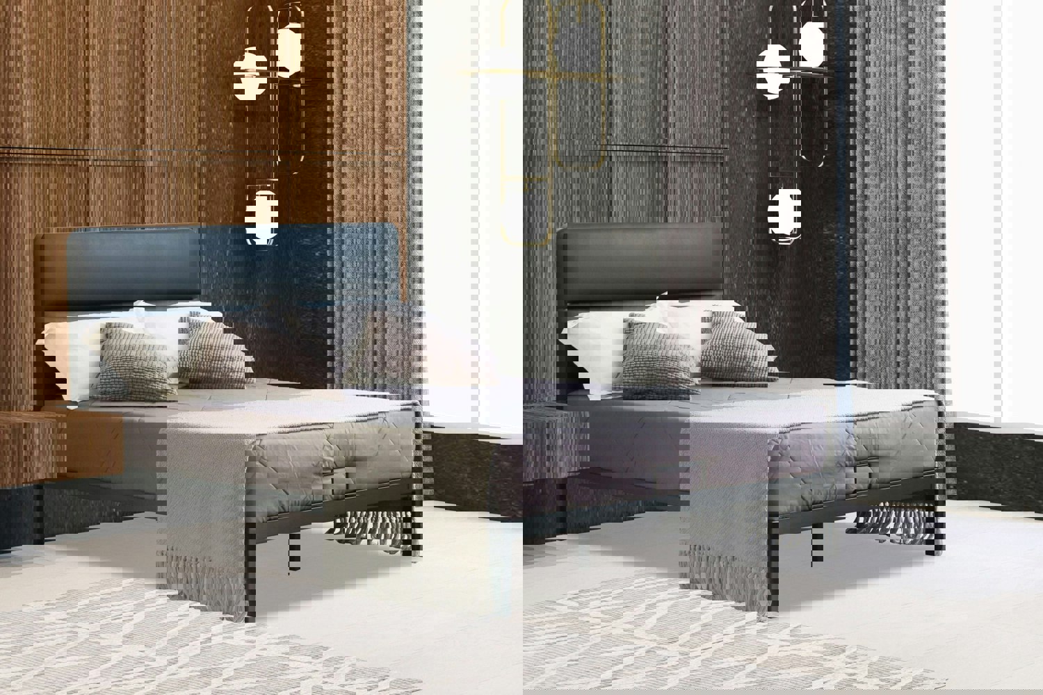 The chic headboard provides perfect support, while the solid metal frame ensures durability