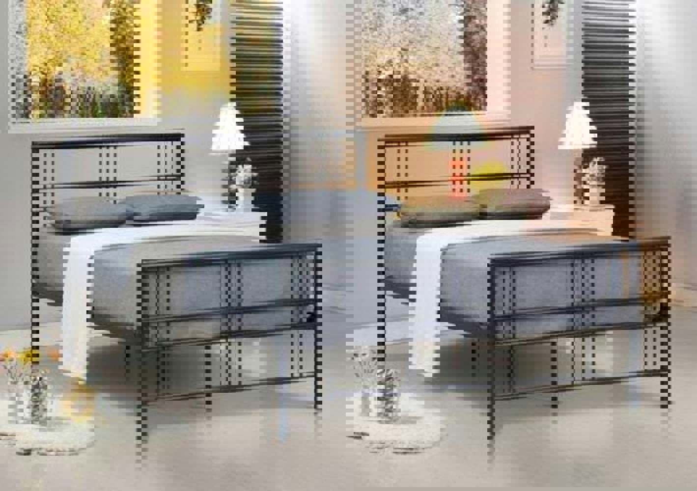 Give your bedroom a contemporary feel with the block design on the head and footboard