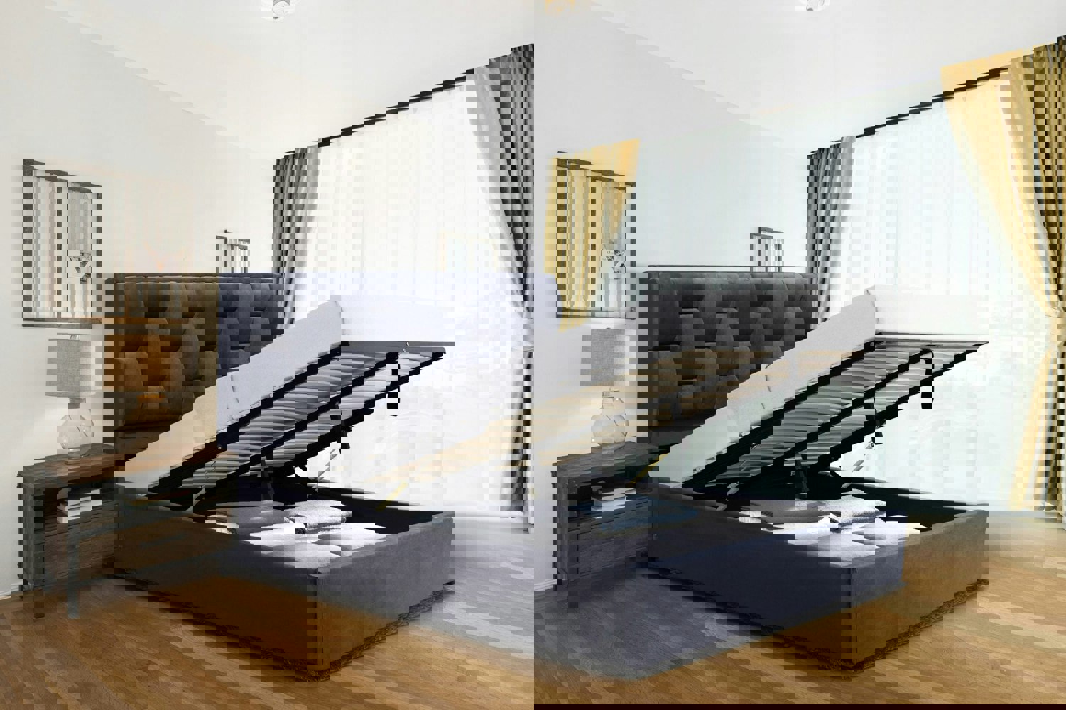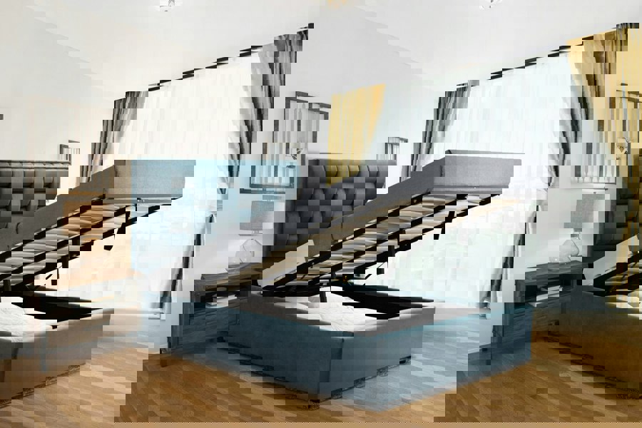 The ottoman feature provides convenient storage, making this bedframe both stylish and functional