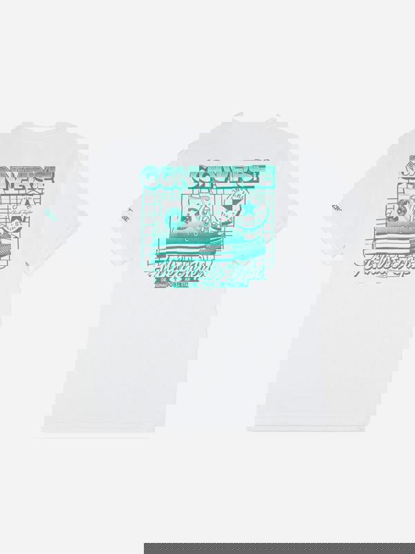 This Converse boys T-shirt comes in ivory with a classic fit. It uses CVC jersey 150 GSM and a 1x1 rib collar, with back neck and shoulder tape for a clean finish. Graphics sit on the left chest and back, printed in water-based ink.