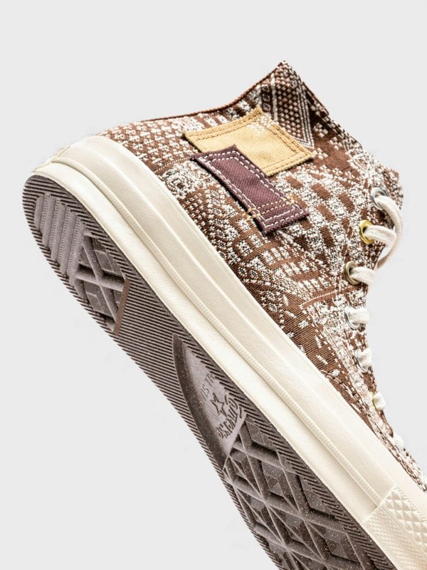 The Converse Chuck Taylor All Star 70 Hi Patchwork Tawny Owl merges vintage basketball heritage with contemporary artistry.