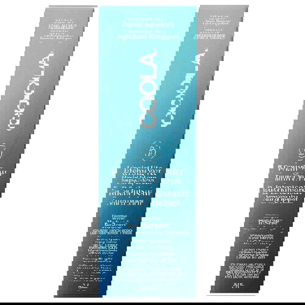 A water-light gel serum that delivers clinically proven plumping hydration and SPF 30 protection. ALWAYS MADE WITH AT LEAST 70%+ ORGANIC INGREDIENTS. Broad spectrum SPF 30 UVA/UVB protection Defends from the effects of blue light, infrared, and pollution. Non-comedogenic Suitable for all skin types. Naturally scented.