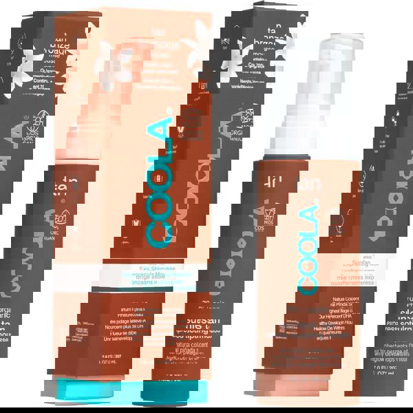 For maximum colour, dispense a generous amount into your hand or onto the applicator side of COOLA’s 2-in-1 Mitt, then spread evenly across the body. Massage in circular motions and allow to dry before dressing. Let the tan develop for 2–4 hours, and reapply if required. Allow 6–8 hours before showering. For best results, exfoliate the skin with COOLA’s 2-in-1 Mitt prior to use.