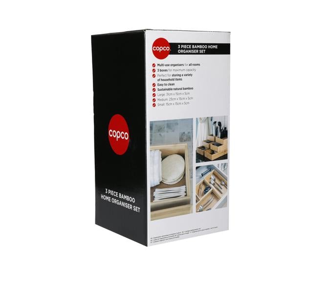 Made from bamboo, they’re kind on the eye and the environment. Perfectly modular, the boxes fit together neatly within a drawer or can easily be stacked to utilise vertical space. Plus, they look great on the worktop or in a home office.