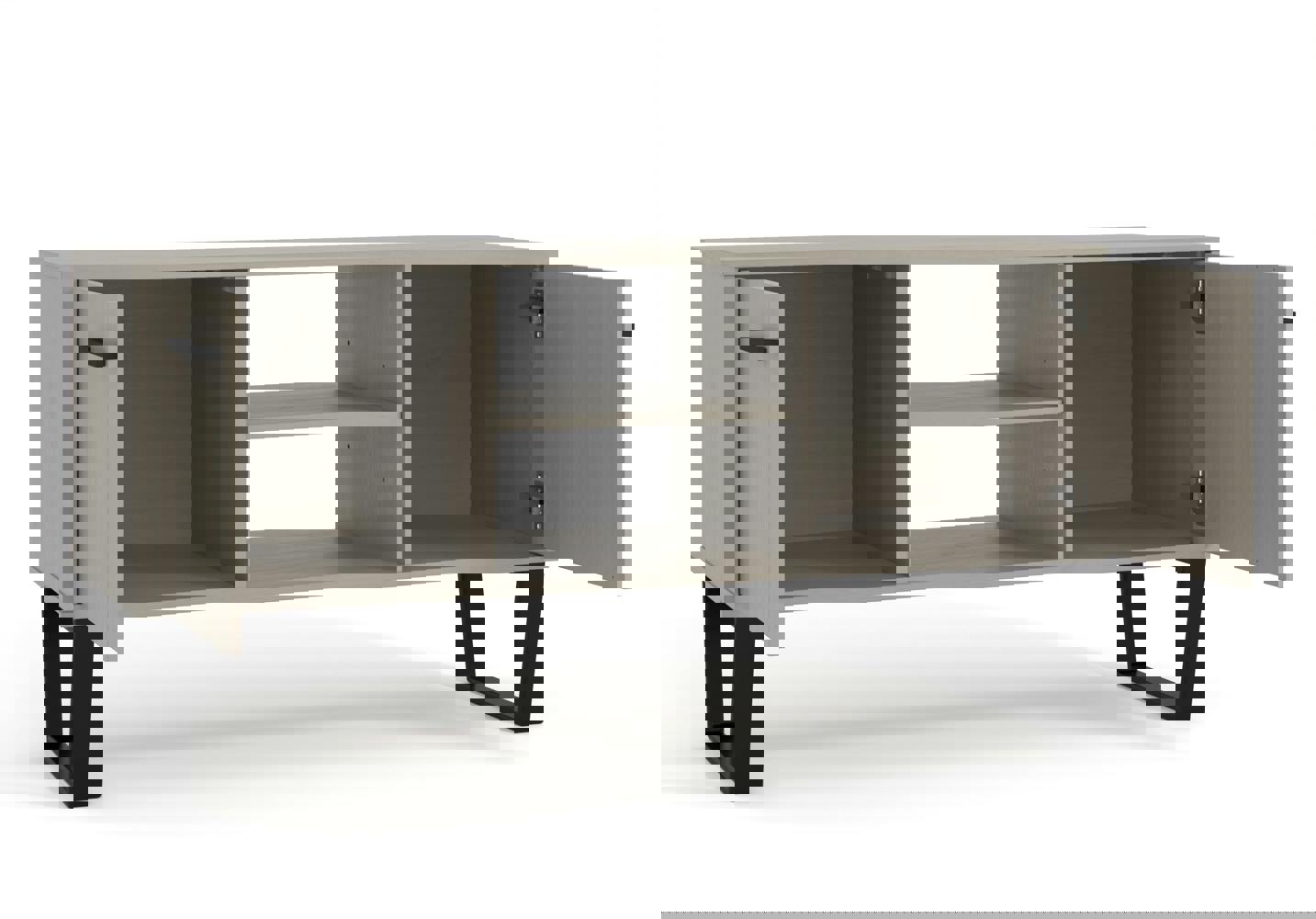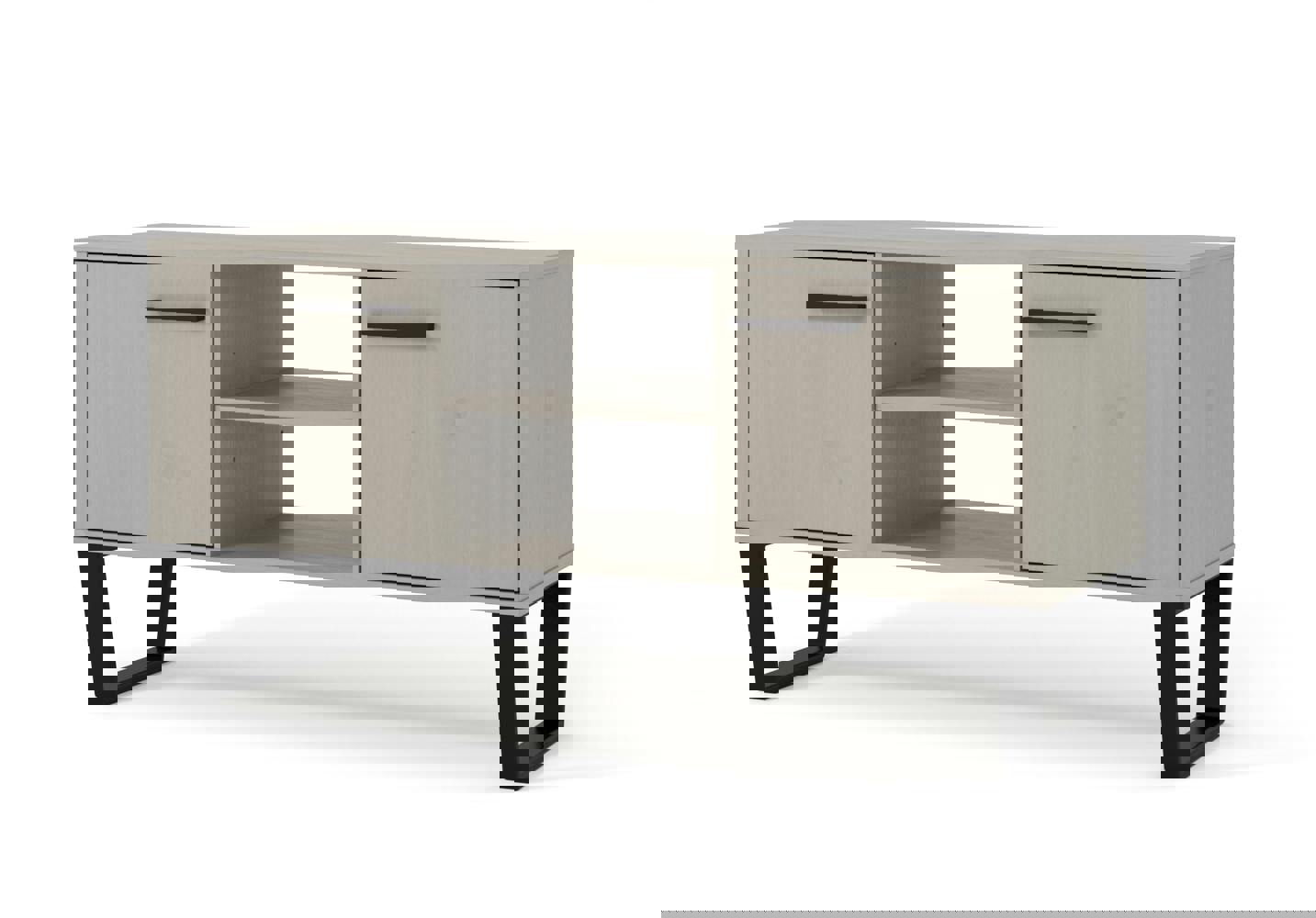 Bring an industrial edge to your living space with the Core Products Texas 2 Door Flat Screen TV Unit. Designed to balance practical storage with a distinctive look, it pairs a grey wax finish with black pull handles and a metal underframe for a clean, considered contrast.