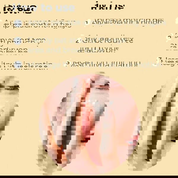 Apply and massage around eyes. Tap area for better absorption