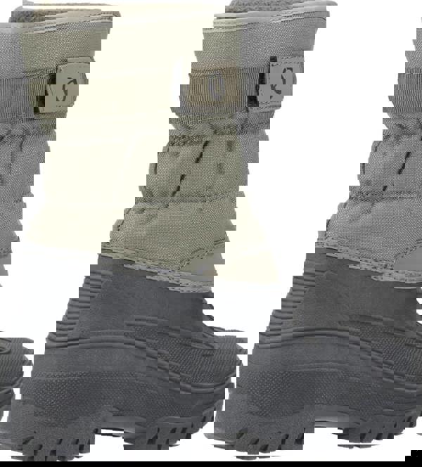 Fleece lined hybrid snow boot with waterproof rubber galosh, gusset zip front and touch fastening strap.