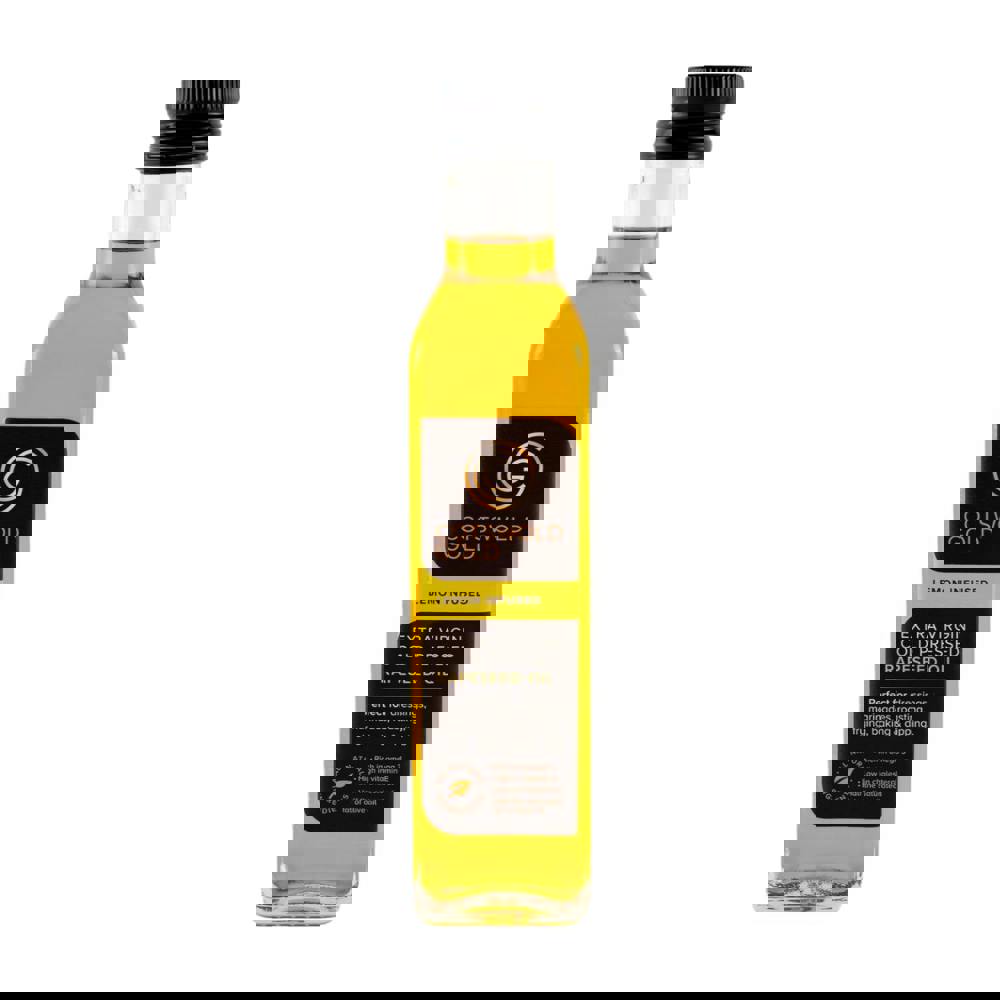 Extra Virgin Rapeseed Oil infused with less than 2% Lemon Oil.