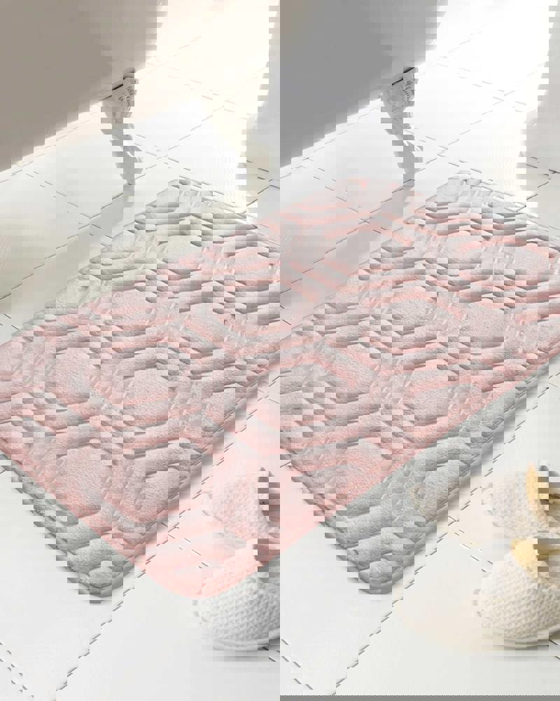 Add a touch of comfort and style to your modern bathroom with this lovely Geo design bath mat! Features a smart Geometric design in an elegant hexagons pattern and an advanced anti slip backing to keep your bathroom dry and safe. The memory foam top cleverly reacts to your steps to give an a comfortable and soft experience.