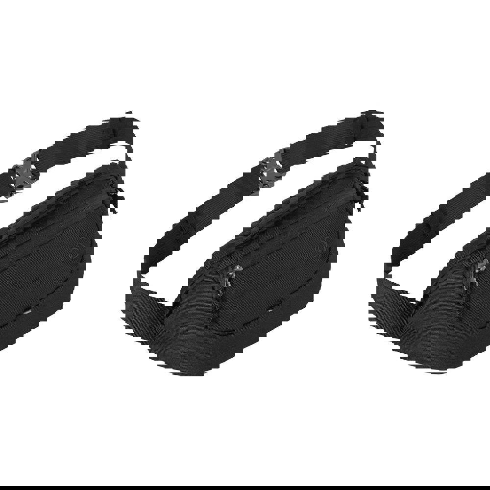 An adjustable waist belt allows a secure, comfortable fit, while the zip fastening opens to a single main compartment with multiple internal pockets to help keep smaller items in order. A front zipper pocket provides quick-access storage, and RFID blocking adds an extra layer of protection for compatible cards. Reflective detailing and a logo finish complete the design, while recycled materials support a more considered choice.