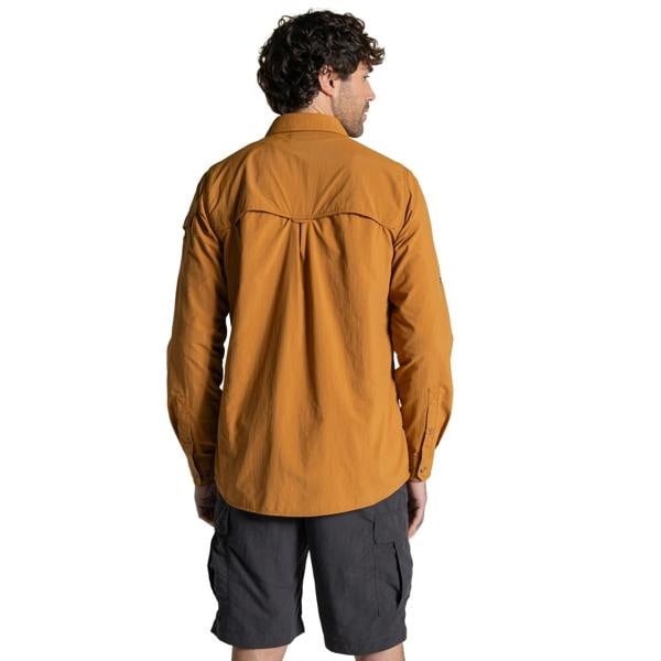 Performance details include Nosilife fabric technology with anti-insect treatment, anti-odour properties, moisture control and quick-dry performance, alongside Solarshield with a UPF 50+ sun rating. Long sleeves can be rolled up, while a vented back, drying loop and built-in sunglasses wipe add considered functionality for travel and outdoor wear.