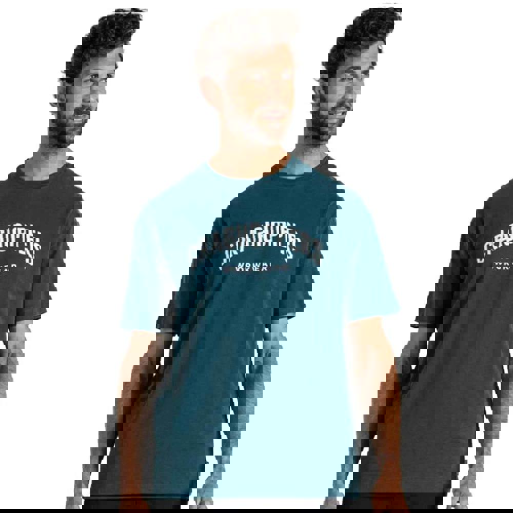 Made from 100% organic cotton, this long-sleeved work T-shirt comes in Dark Aegean Blue with a logo design. It has a contrast crew neckline with ribbing, plus a taped neck and chain-stitch construction. An underarm panel is included for added detail, while twin needle stitching finishes the hem and cuffs.