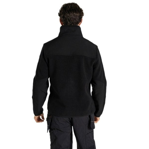 This men’s fleece jacket is made from 100% recycled polyester with borg and fleece fabric in a plain black finish. The 400gsm construction is paired with H2OShield fabric technology and softshell panels for added structure.