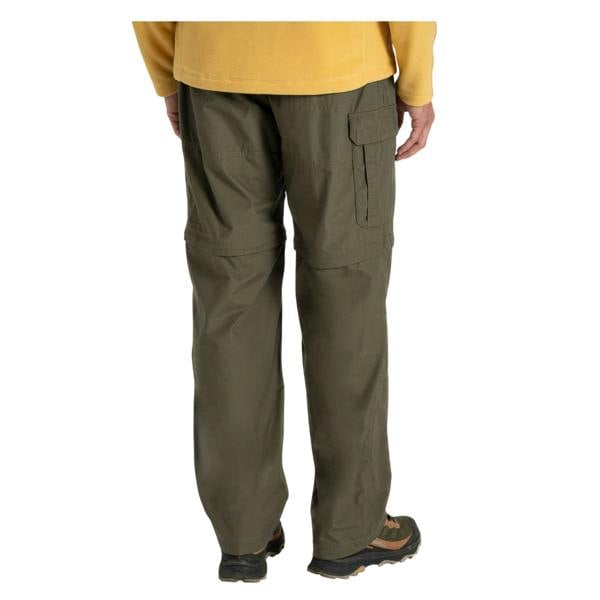 Built for practical wear, Craghoppers Kiwi Peached Convertible Trousers come in wild olive with a relaxed fit and a high-rise, part-elasticated waist. The double-layer, peached and reinforced fabric uses recycled polyester and recycled cotton, finished with a built-in belt and a button fastening with zip fly. Zip-off legs add versatility, while heel tape and a logo detail complete the design.
