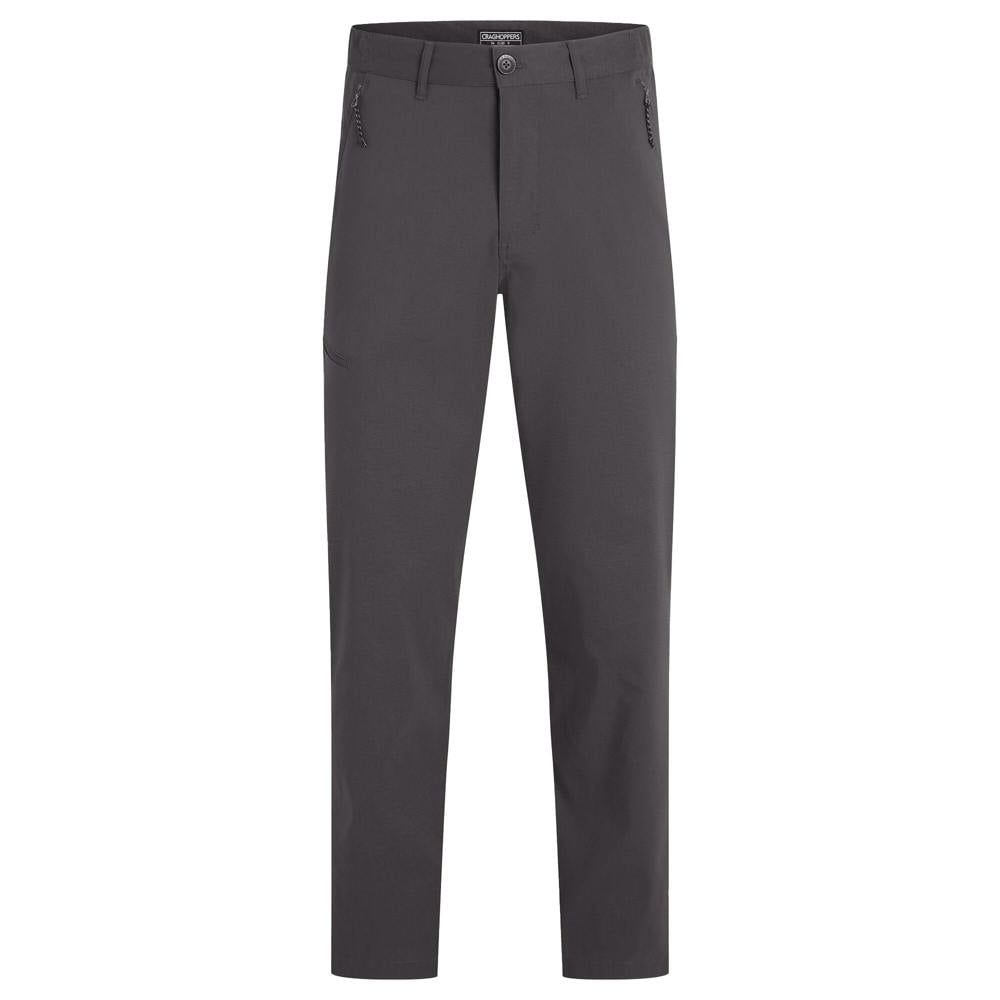 Built for active days, Craghoppers Kiwi Pro III lightweight trousers keep the profile clean while packing in practical details. This men’s style comes in dark lead with a plain finish and logo detailing, cut with a mid-rise waist and a part-elasticated waistband for comfort on the move. A button fastening and zip fly keep the look classic, while belt loops allow for easy adjustment.