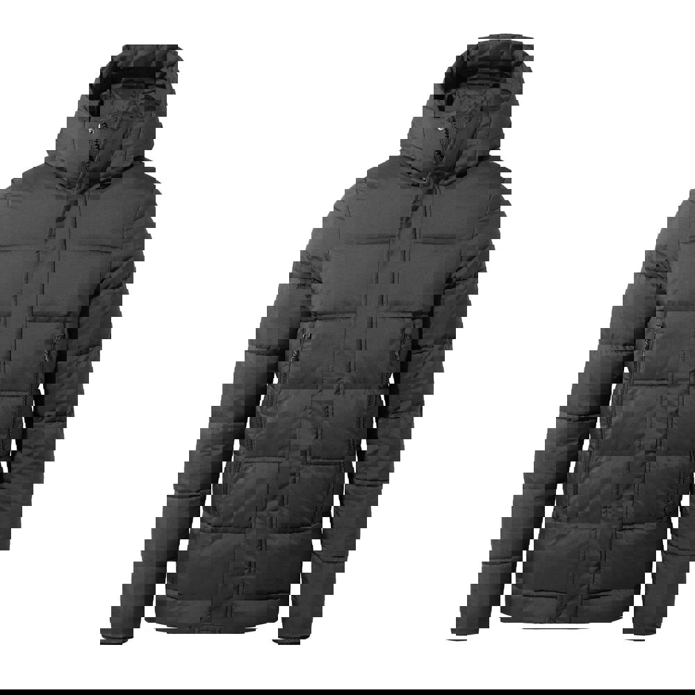 A hooded neckline and long sleeves provide coverage, while the full zip fastening includes a chin guard. Storage is organised with two side pockets and two internal pockets, including a zipped pocket. The hem adjusts for a more secure finish. Fabric technology includes anti-odour, a durable water repellent finish, H2OShield, RFID blocking, Thermo Pro, warmth rating 3 and wind resistance.