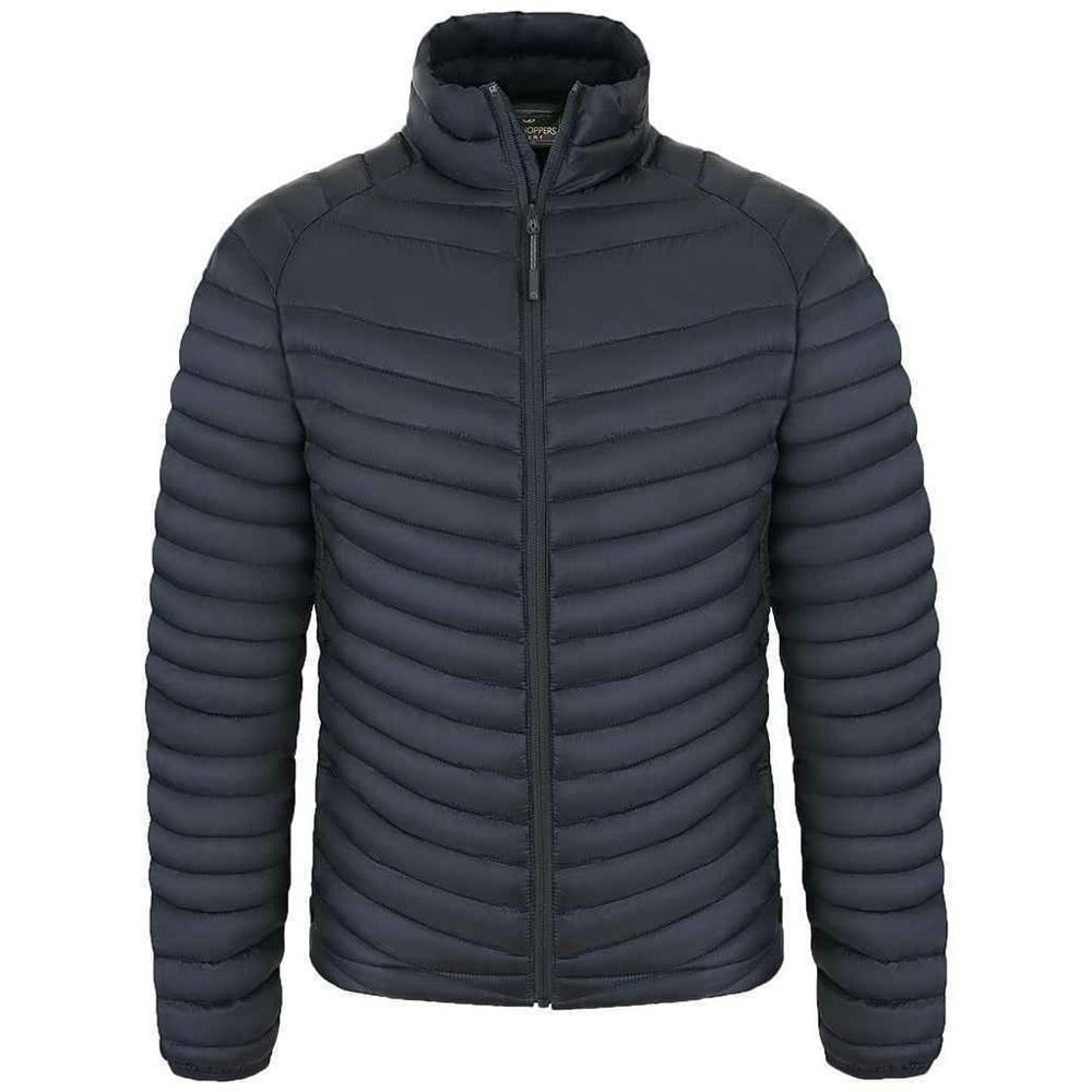 The Craghoppers Expert Expolite Thermal Jacket in dark navy is a quilted, long-sleeved style with a standing collar and a full zip fastening. It includes an inner zip guard and a branded pull tab, with bound, elasticated cuffs and a drawcord hem for adjustable wear. Built for practical outerwear use, it is showerproof, wind resistant and water repellent, and it packs away for convenient storage.