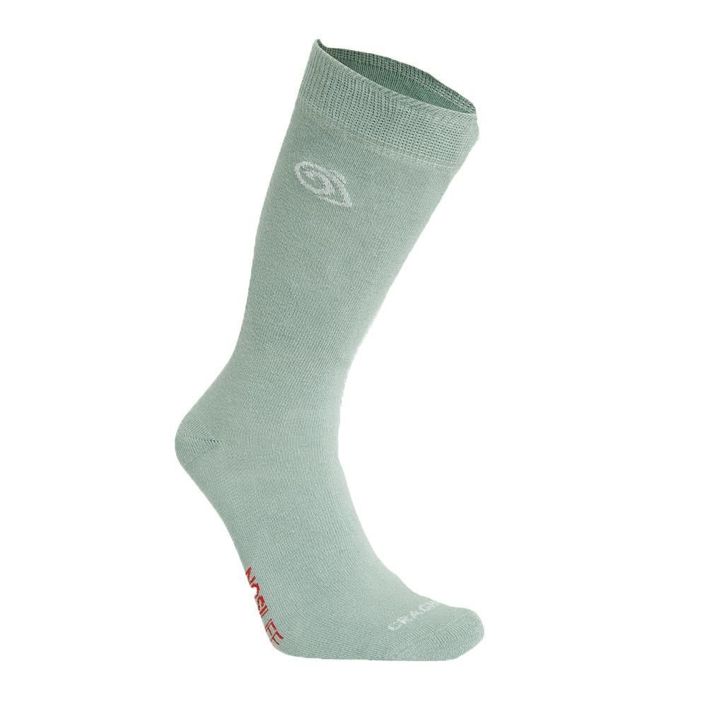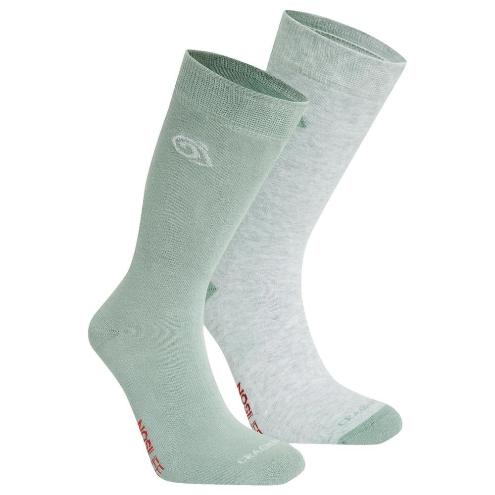Craghoppers unisex adult socks come in a pack of two in soft grey marl and lichen green. Made from a blend of organic cotton, polyester, polyamide and elastane, they have a plain finish with logo detailing. Lightweight construction is paired with Nosilife fabric technology, with anti-insect treatment and anti-odour properties.