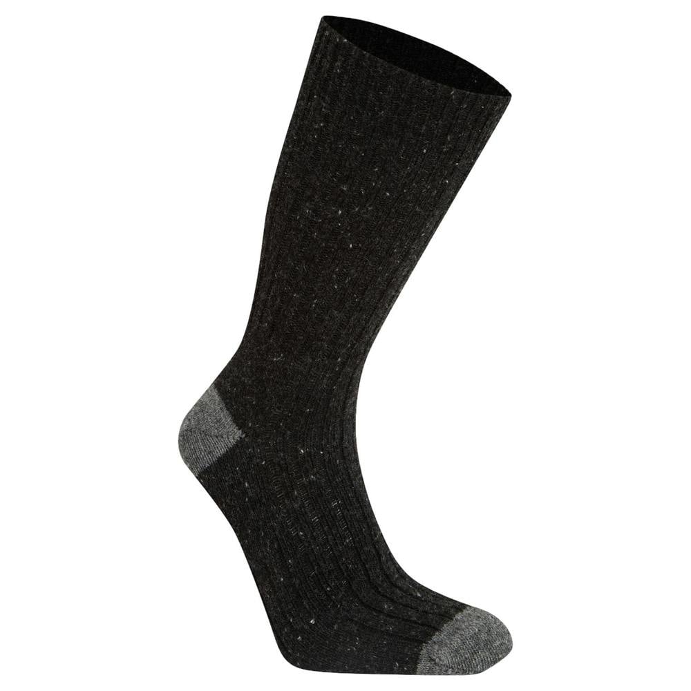 Craghoppers Torver walking socks come in a black pepper and light grey colourway with a speckle design. Made from a wool-blend fabric, they combine 53% wool, 38% acrylic, 8% polyamide and 1% elastane. The construction includes a ribbed cuff and built-in arch support.