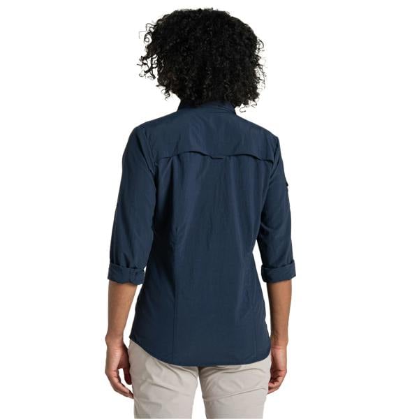 Built for active days, the Craghoppers Adventure III Nosilife long-sleeved shirt comes in blue navy with a plain finish. Made from polyester, it has a turn-down collar with a cooling inner collar and wicking mesh for a clean, practical look. Long sleeves are finished with buttoned cuffs, while a vented back adds a considered detail.