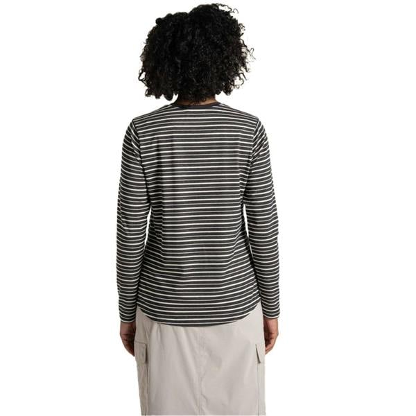 Finished in charcoal with a striped design, this women’s style uses Nosilife fabric technology with insect repellent, odour control and quick-dry performance, making it a practical choice for travel and outdoor plans.
