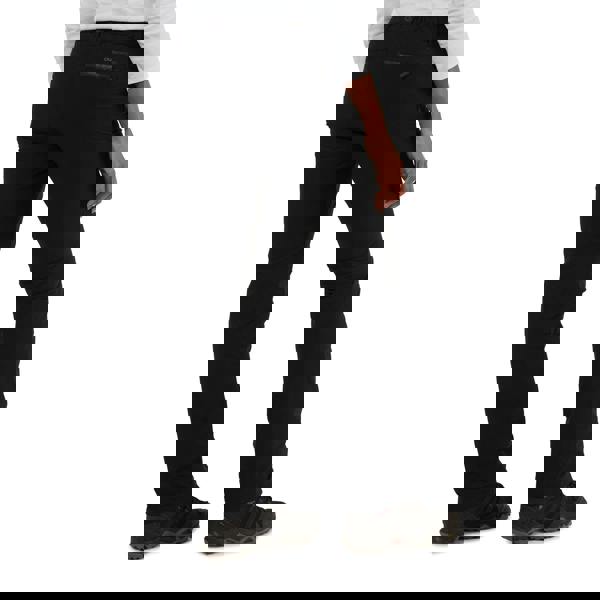 These women’s Kiwi Pro waterproof trousers from Craghoppers come in black with a plain finish and logo text detailing. Made from 96% polyamide and 4% elastane, they use Aquadry stretch fabric technology and include polyester trim. SmartDry Eco technology is included, alongside breathable and moisture wicking properties.
