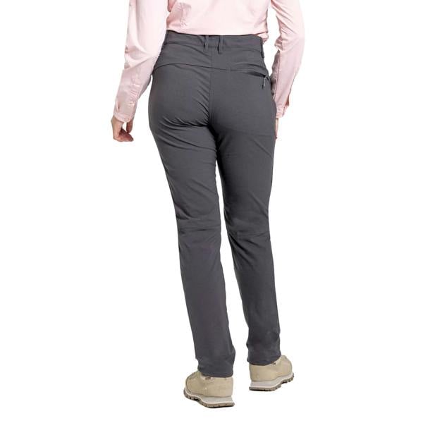 These Craghoppers women’s Nosilife Pro II trousers come in charcoal with a stretch construction and logo detailing. They fasten with a button and zip fly, and include belt loops for everyday wear. The waistline and hem are adjustable, and a built-in sunglasses wipe adds a practical finishing touch.