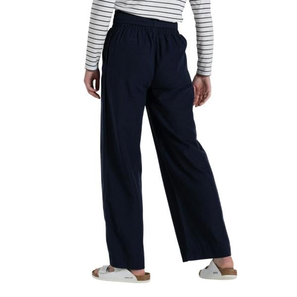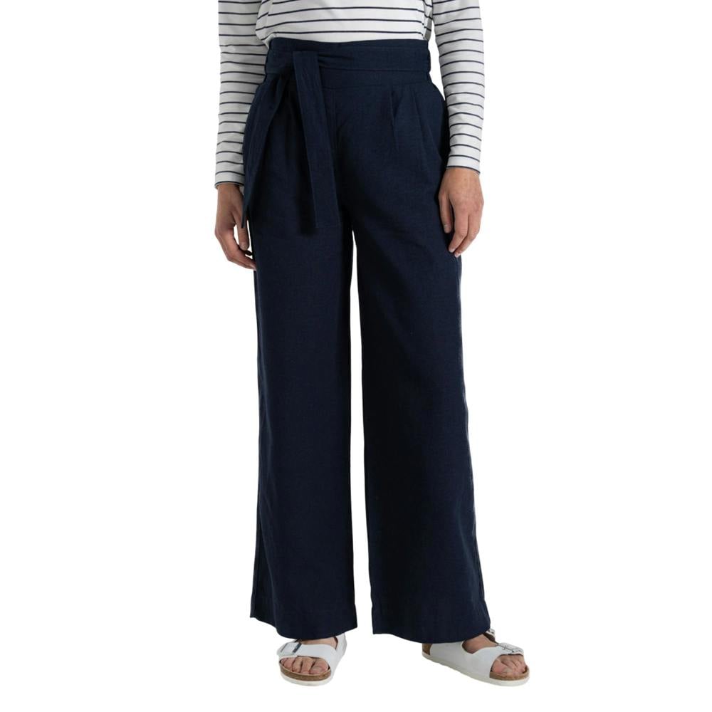 These Craghoppers Ophelia trousers come in a blue navy chambray with a plain finish and a relaxed fit. Made from a 55% linen and 45% cotton blend, they have a belted waist with belt loops and a part elasticated waistband for added adjustability.