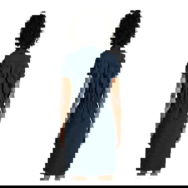 Built for warm-weather days, the Craghoppers Womens Pro IV Nosilife Dress comes in blue navy with a plain finish and button detailing. The stretch material blends recycled polyester with elastane and is cut to a slim fit, with a turn-down collar and short sleeves. Falling above the knee, it includes two side pockets with zip closure and a drying loop.