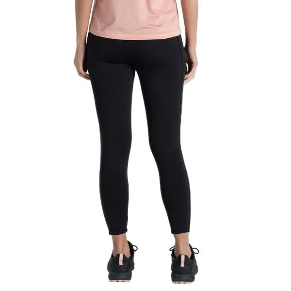 These Craghoppers Velocity leggings come in black with a plain finish and logo detailing. Built with stretch fabric technology, they include a durable water repellent finish and H2OShield for splash-proof wear. Moisture control and Solarshield are included, with a UPF 40+ sun rating. An elasticated waistline keeps the design simple and practical, while reflective detail adds a functional touch. Made from recycled materials, they are also easy-care.
