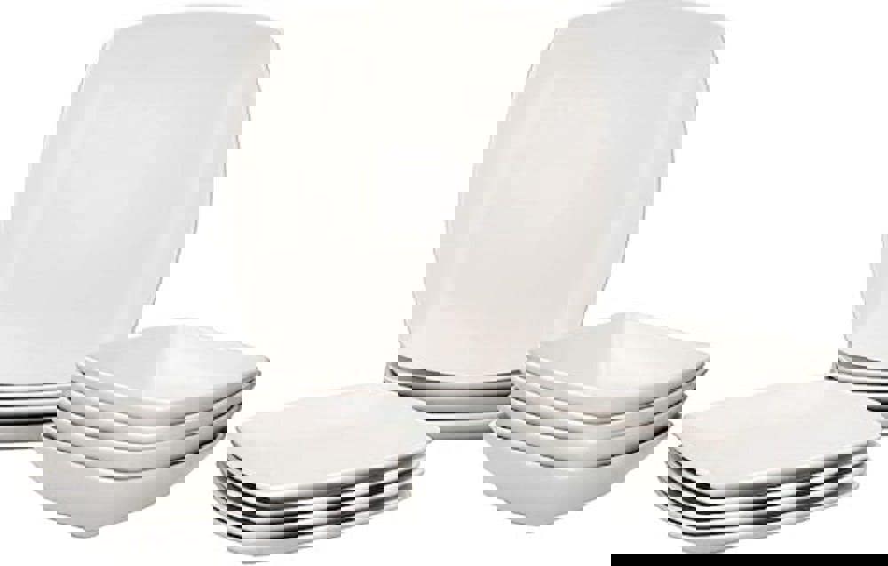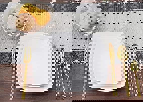 Nobody likes drama at a dinner party, but these dramatic white plates and bowls are a whole different story. Add Raven to your dinnerware collection, and you’ll make an impression at every meal. This white square dinner set pairs a classic colour with ultra-modern geometric angles. It’s a striking look that nonetheless coordinates seamlessly with your existing tableware and home décor. Use them solo for a very suave, sophisticated table setting, or match them with black dinner crockery sets to make the white really pop. It makes a great everyday dinnerware set too – there are four dinner plates, four side plates and four bowls, so you have everything you need for the family table.