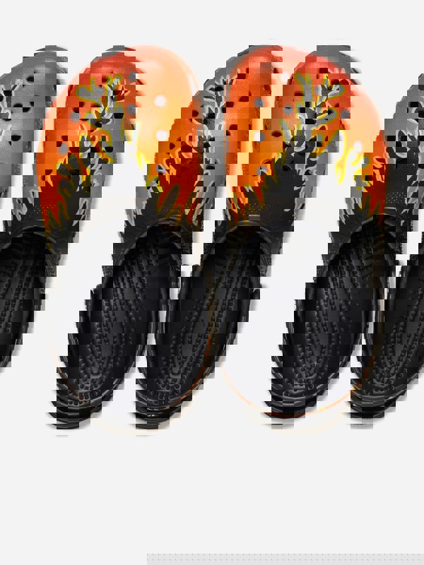 Crocs Boys Classic Flames Clog in black adds a bold finish to everyday footwear. The upper carries flame motifs for a standout look, while the lightweight Crocs material keeps the design easy to wear. Built for durability, this classic clog shape suits a range of activities across the seasons.