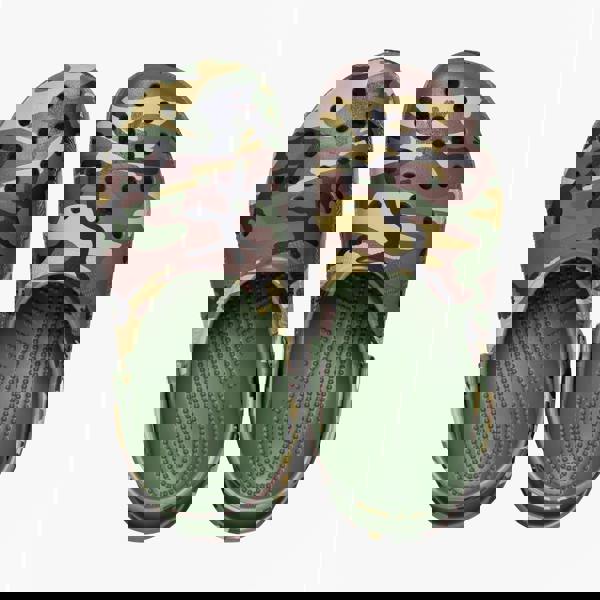 These unisex camouflage clogs feature Croslite material for breathability and lightweight comfort.
