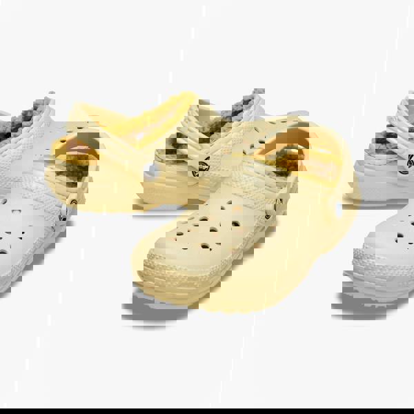 Croslite unisex lined clogs feature faux fur lining and a round toe, offering comfort and warmth.