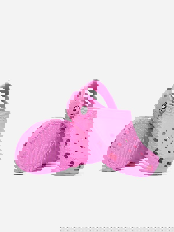 Crocs girls classic clog in pink brings a bright, playful look to the SS2024 collection. The classic clog shape keeps the design simple and recognisable, finished in a vibrant pink colour.
