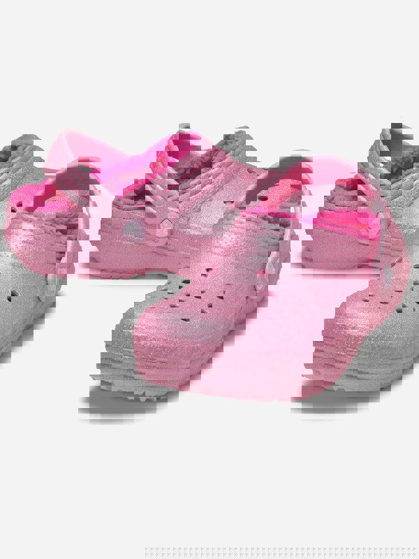 These Crocs Girls Classic Lined Glitter Clog in pink bring a glitter finish and a cosy lining to a classic clog shape. Part of the AW2024 selection, they add sparkle to everyday wear while keeping the inside lined for comfort.