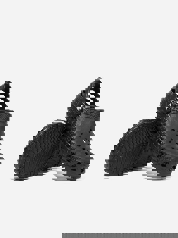 These unisex Crocs Kids Classic Clog toddler shoes come in black and suit a wide range of occasions. Made from sturdy Croslite material, they include a pivoting heel strap for a more secure fit. Signature ventilation ports complete the classic clog look.